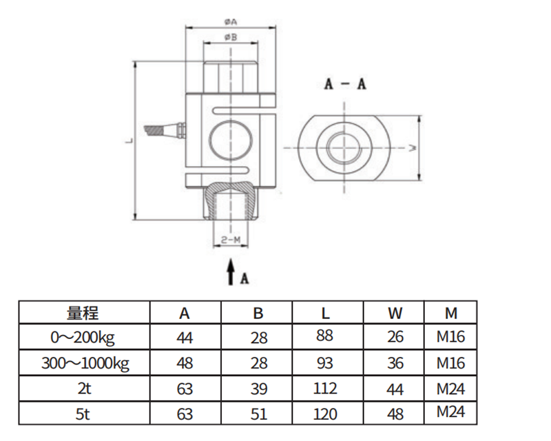 50、100、200、500 kg 1t、2t、3t、5t、7t |