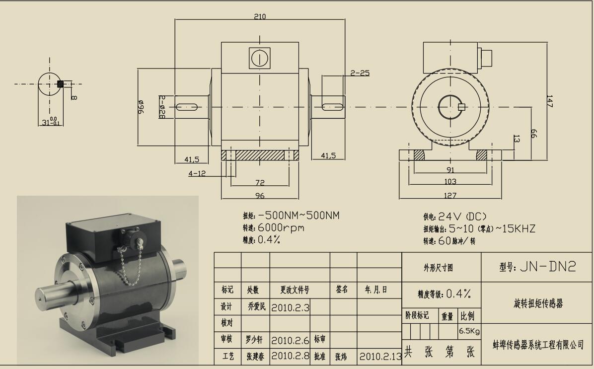5、體積小、重傳感器可脫離二次儀表獨立使用,只需提供24VDC電源,即可輸出阻抗與扭矩成正比脈沖方波頻率信號